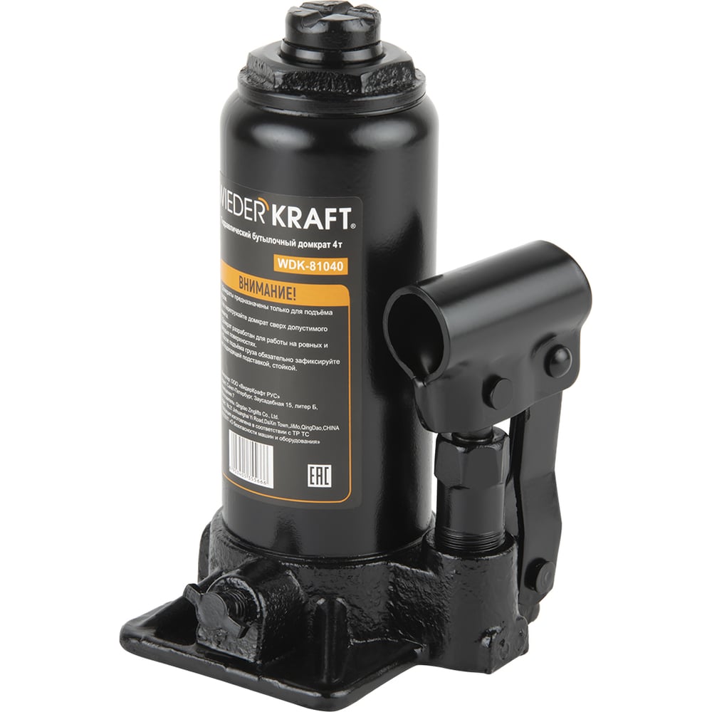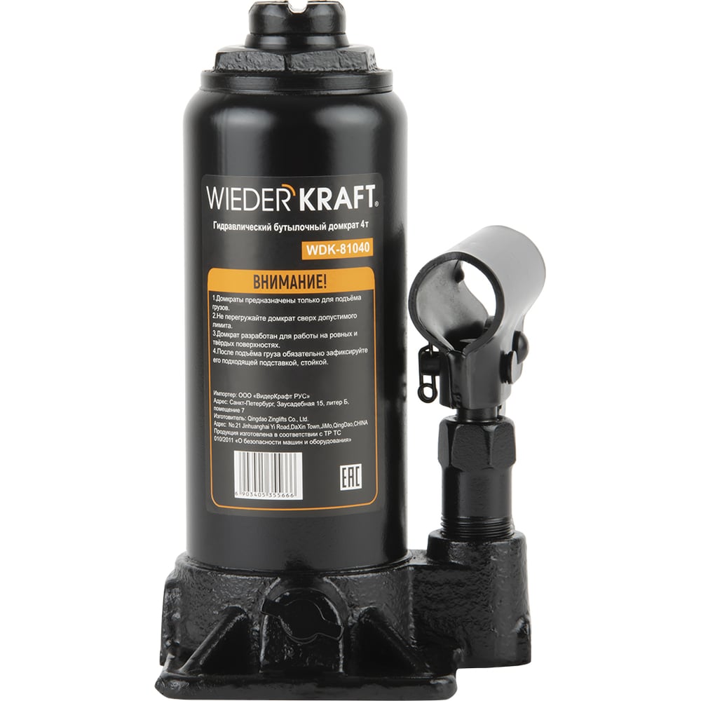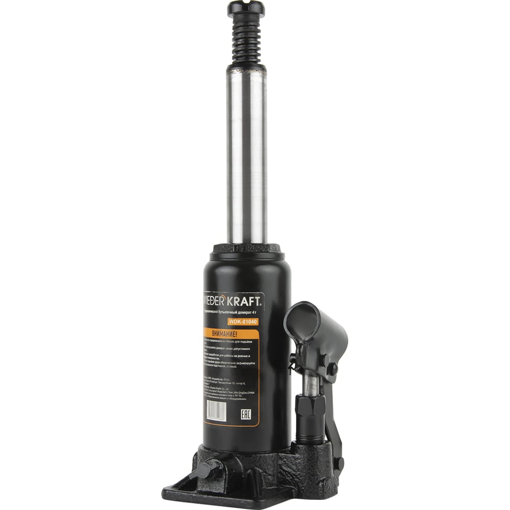 Wiederkraft домкрат бутылочный 4т гидравлический высота 180-360 черный wdk-81040