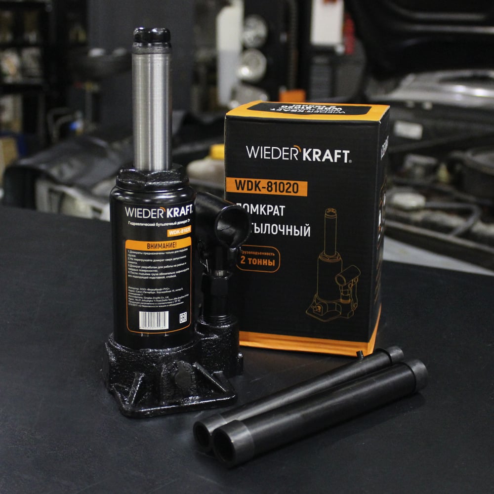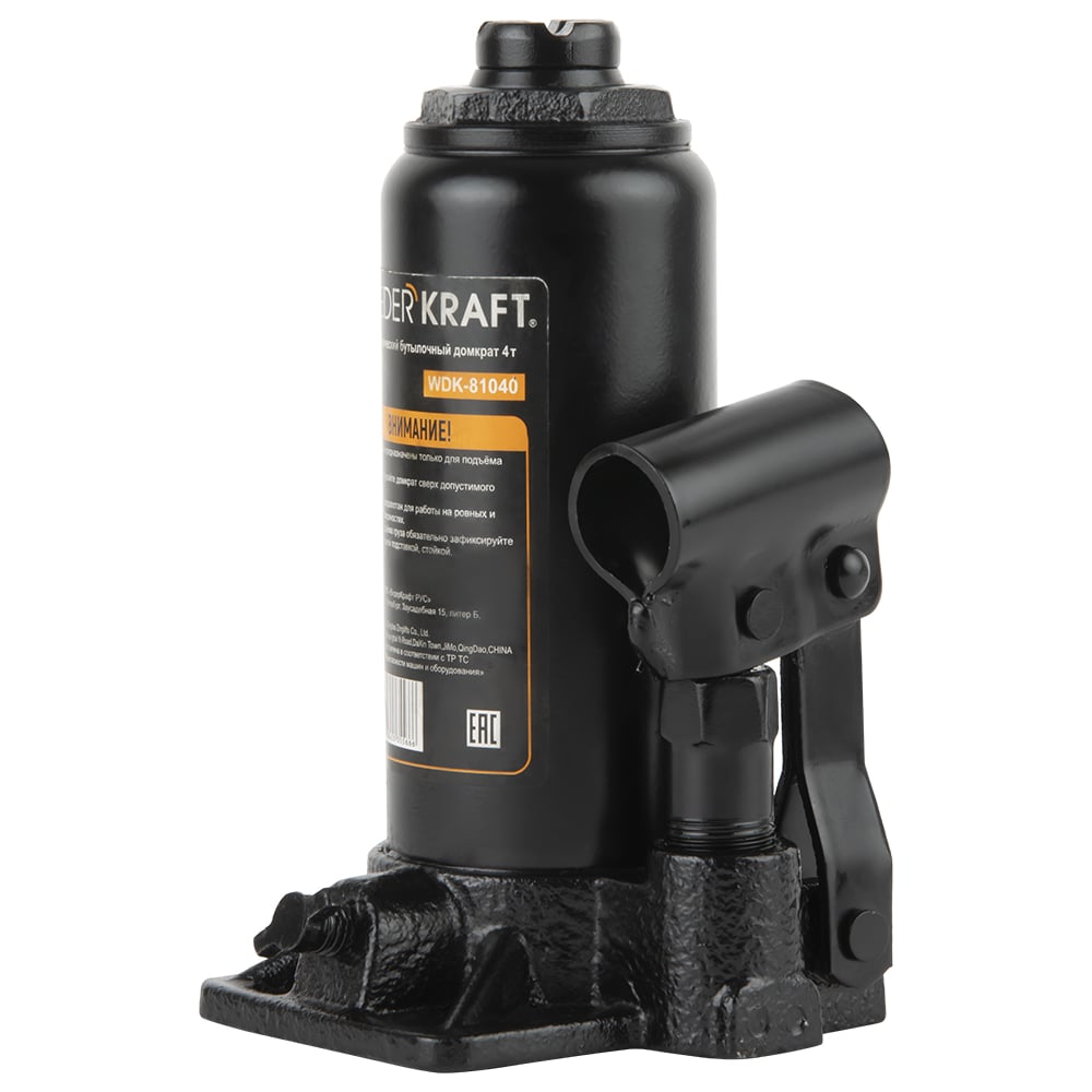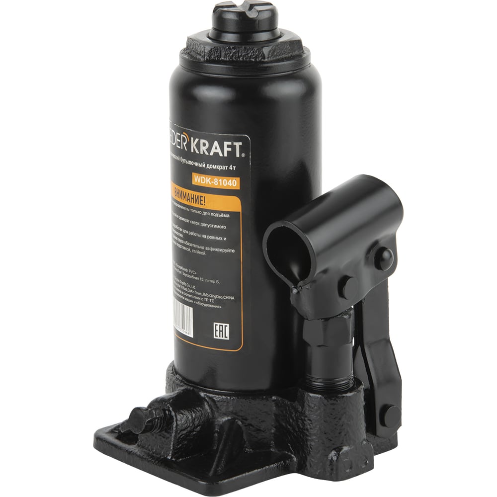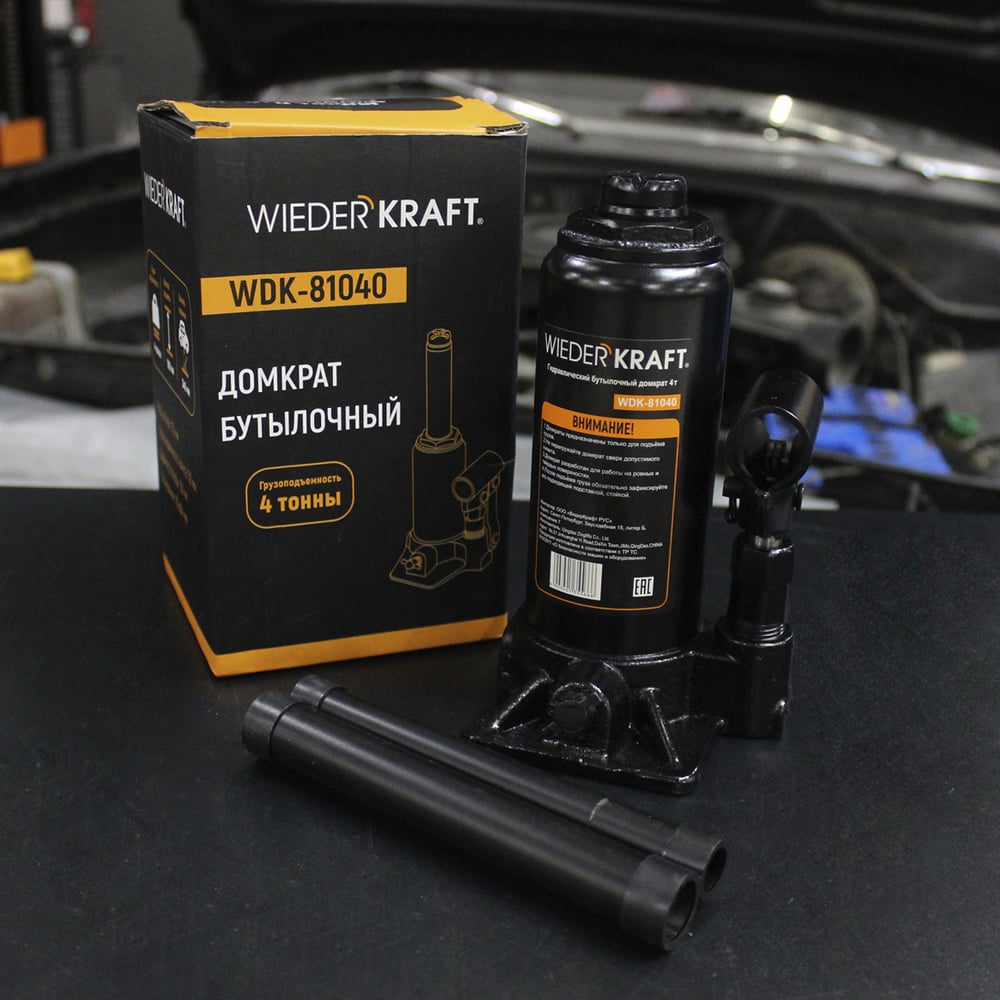 Wiederkraft домкрат бутылочный 4т гидравлический высота 180-360 черный wdk-81040
