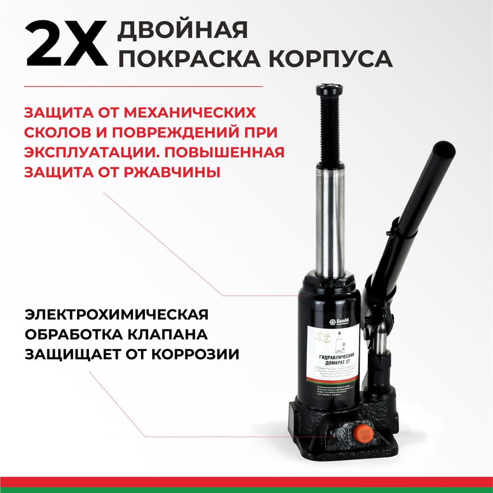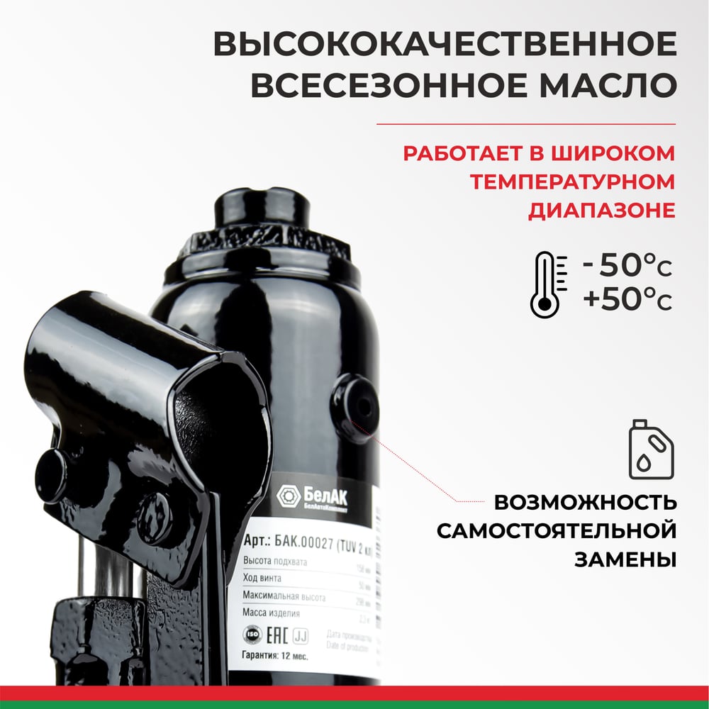 Домкрат БелАК 2 т, TUV, 2 клапана БАК.00026