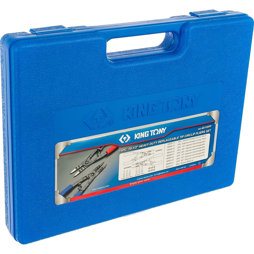 King tony набор съемников для стопорных колец 267 мм, сменные насадки, кейс, 15 предметов 45115pp