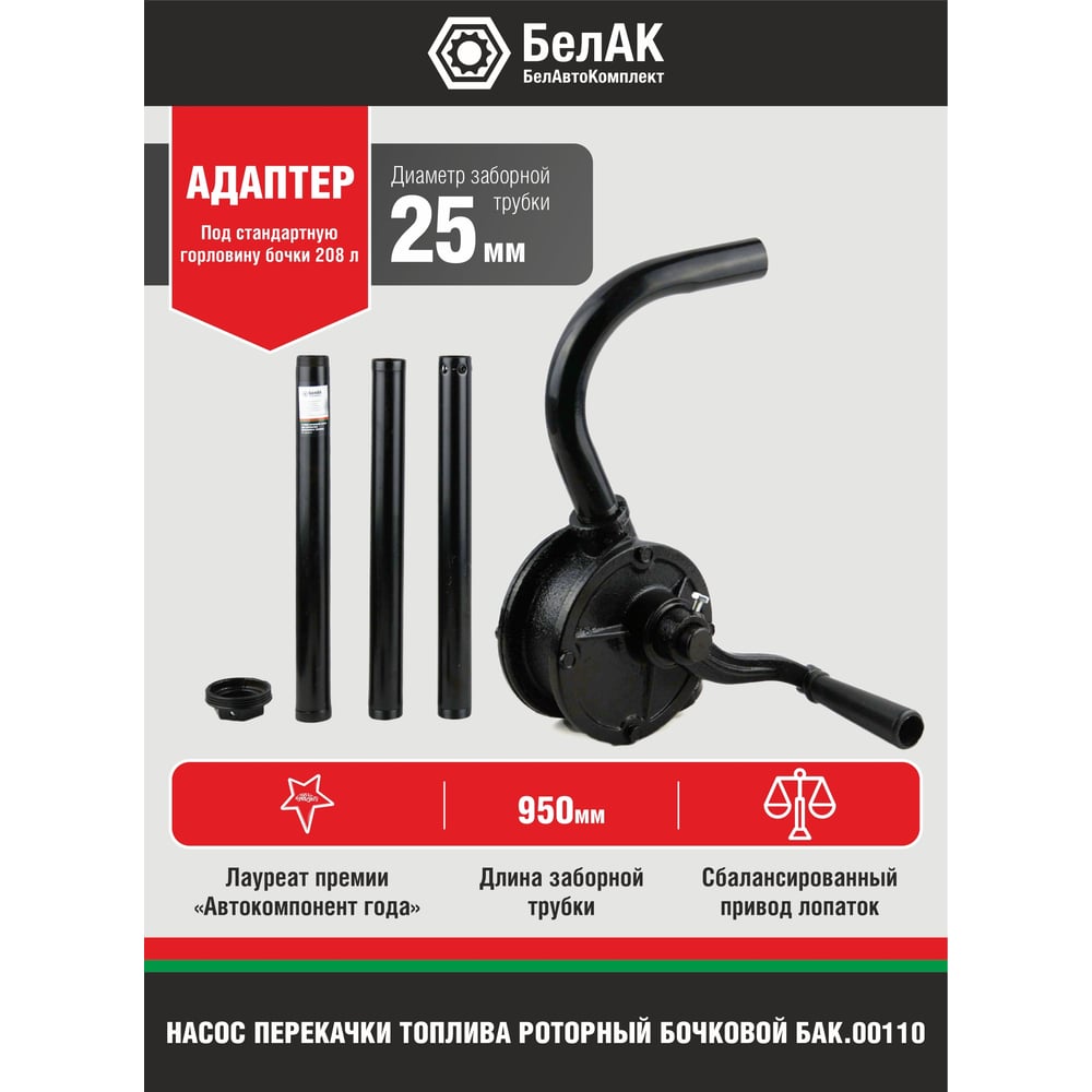 Бочковой ручной роторный насос перекачки топлива БелАК "Гефест" БАК.00110