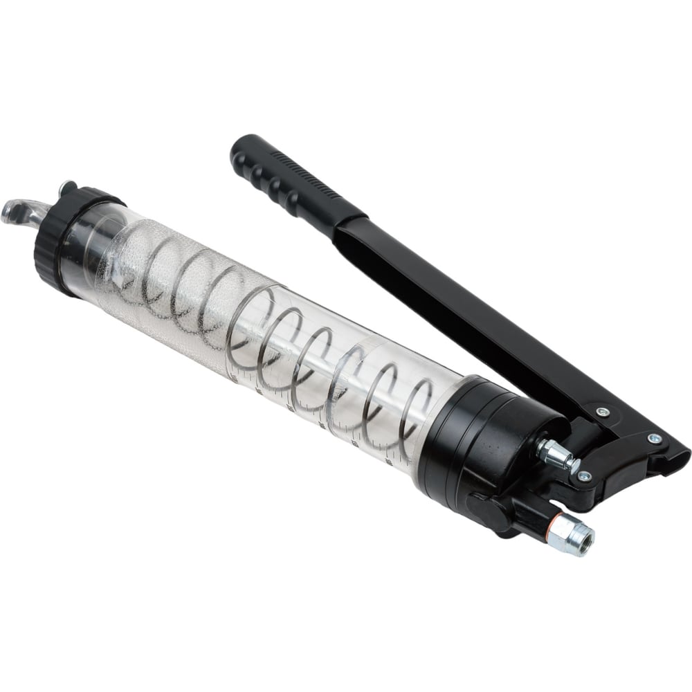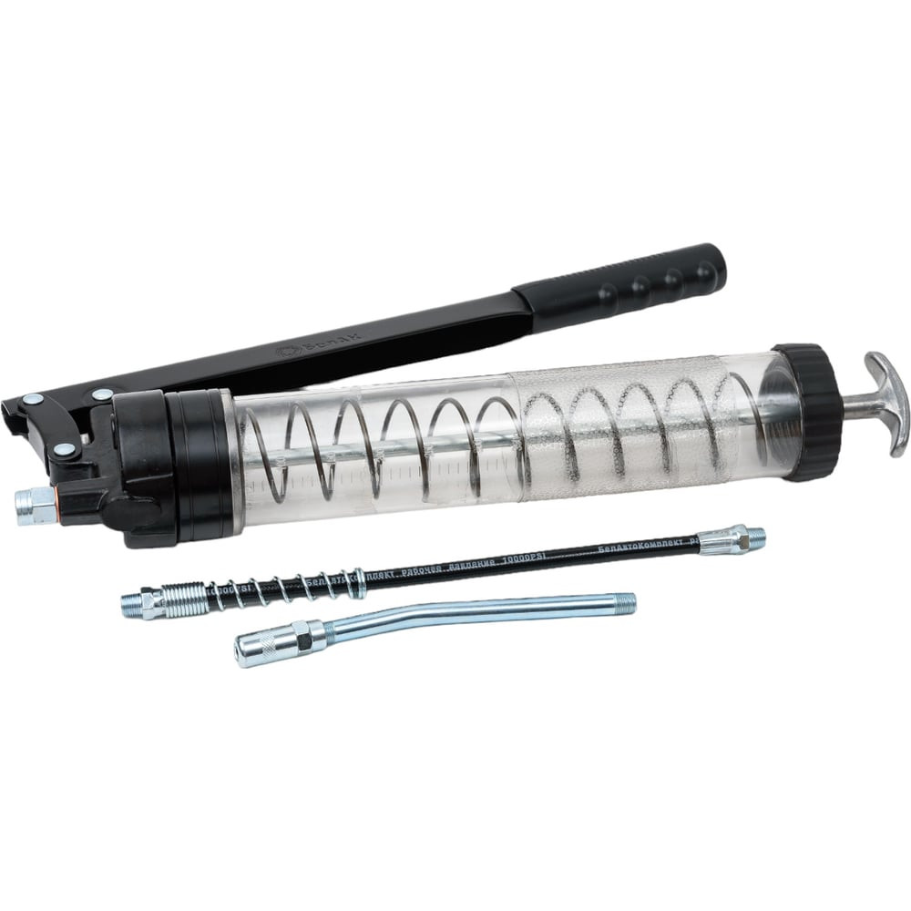 Габариты без упаковки 420х120х65 мм Комплектация шланг+трубка Тип шприц Класс товара Бытовой Вес нетто 1.7 кг Соединительная резьба M10х1 Работа с картриджем 400 гр нет Работа с картриджем 85 гр нет Заправка нагнетателем нет Заправка смазкой да Прозрачный корпус да Одноручный шприц нет Работа с картриджем 450 гр нет Рабочее давление 306 атм Длина шланга 0.3 м Клапан для удаления воздуха да Емкость смазки 600 см³ Смазка вязкостью до NLGI 2