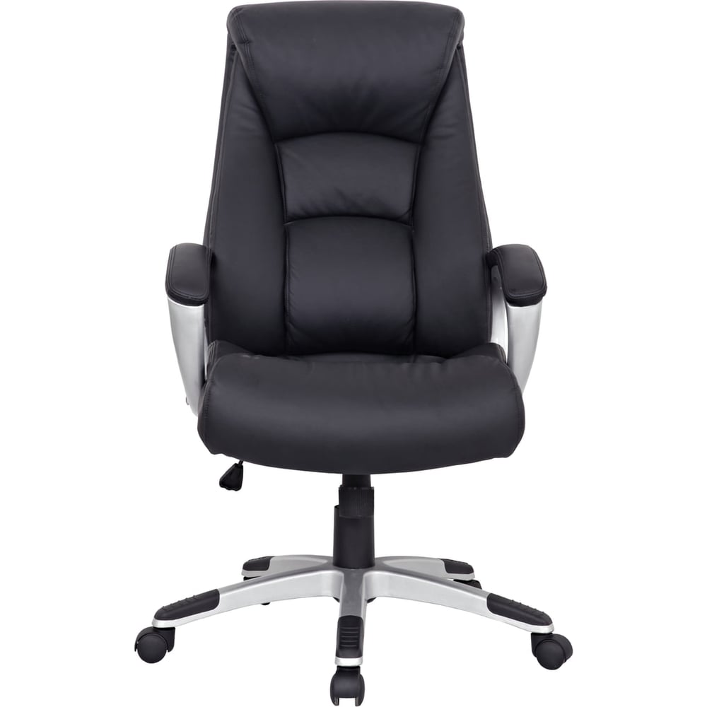 Габариты без упаковки 1185x670 мм Вес нетто 18.4 кг Стиль современный Регулировка высоты сиденья да Требует сборки да Подлокотники да Подъемный механизм да Механизм качания да Регулировка высоты спинки нет Регулировка высоты подлокотников нет Механизм вращения да Подголовник да Регулировка наклона спинки нет Подставка для ног нет Max нагрузка 120 кг Ширина сиденья 530 мм Глубина сиденья 500 мм Ширина спинки 530 мм Высота спинки 700 мм Min высота сиденья 450 мм Мах высота сиденья 530 мм Поясничный упор нет Цвет спинки черный Материал крестовины пластик Материал подлокотников пластик Цвет сиденья черный Материал обивки кожа Колеса есть