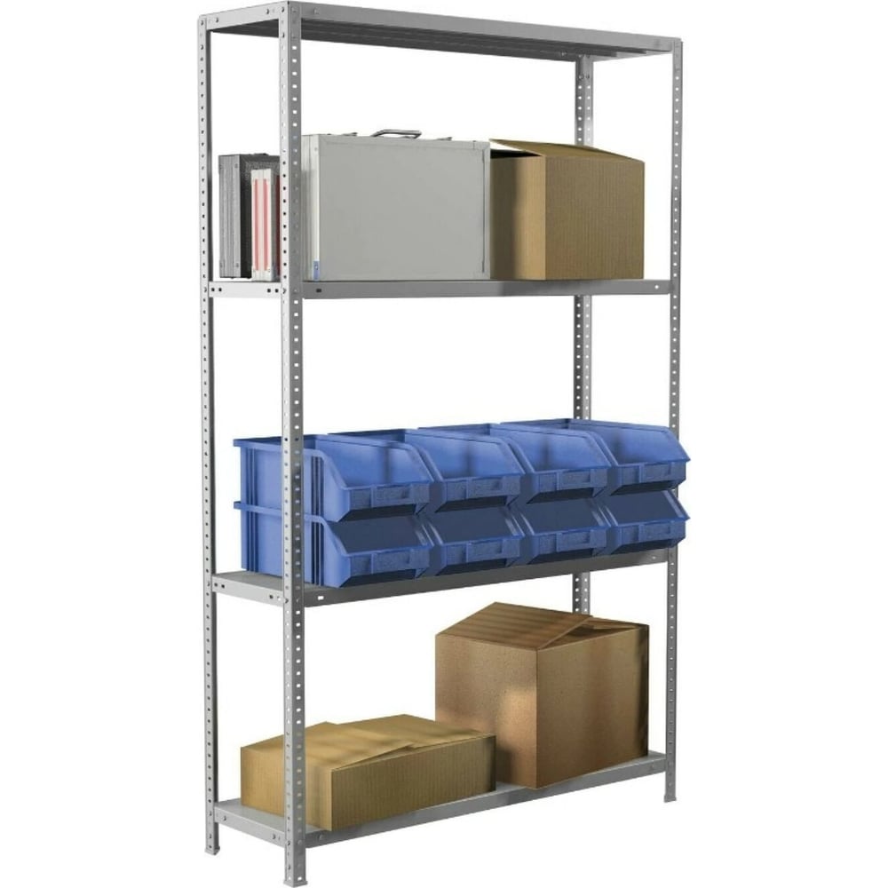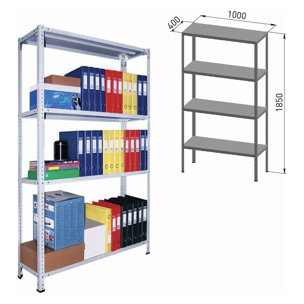 Габариты без упаковки 1850х1000х400 мм Высота 1850 мм Материал металл Покрытие порошковое Ширина 1000 мм Цвет серый Вид стеллаж Класс товара Бытовой Установка напольный Глубина 400 мм Конструкция стационарный Сборные нет Max нагрузка на полку 100 кг Кол-во полок/ярусов 4 шт Вес стеллажа 25.5 кг Безболтовые нет
