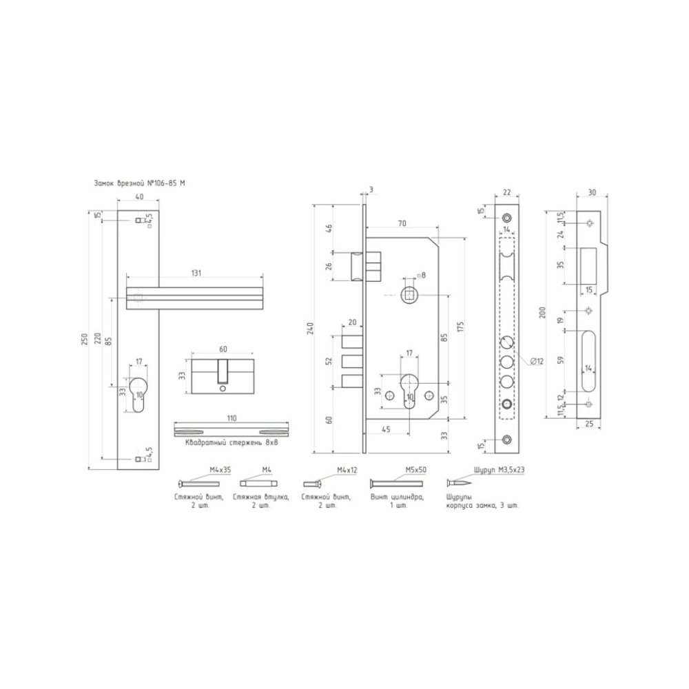 Высота 240 мм Длина 70 мм Комплектация корпус, механизм, ручки, ключи, ответная планка, крепеж Ширина 22 мм Класс товара Бытовой Коллекция нет Назначение для деревянных/металлических дверей Влагозащищенный нет С защелкой да Кодовый нет Ручки в комплекте да С вертушкой нет Уличный нет Антивандальный нет Сейфовый нет Двухсистемный нет Морозоустойчивость нет Противопожарный нет Удаление ключевого отверстия (Backset) 45 мм Вылет ригеля 20 мм Тип ключа английский Количество ригелей 3 шт Форма ригеля цилиндр Количество ключей 5 шт Тип замка врезной Межосевое расстояние 85 мм Тип механизма секретности цилиндровый Тип запирания не автоматическое Направление открывания двери левое/правое Класс секретности малый Класс безопасности 1 Цвет лицевой планки матовый кофе