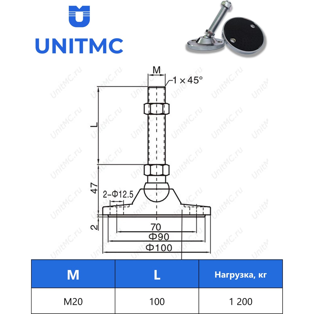 Шарнирная регулируемая опора UnitMC 400203 100хМ20х100