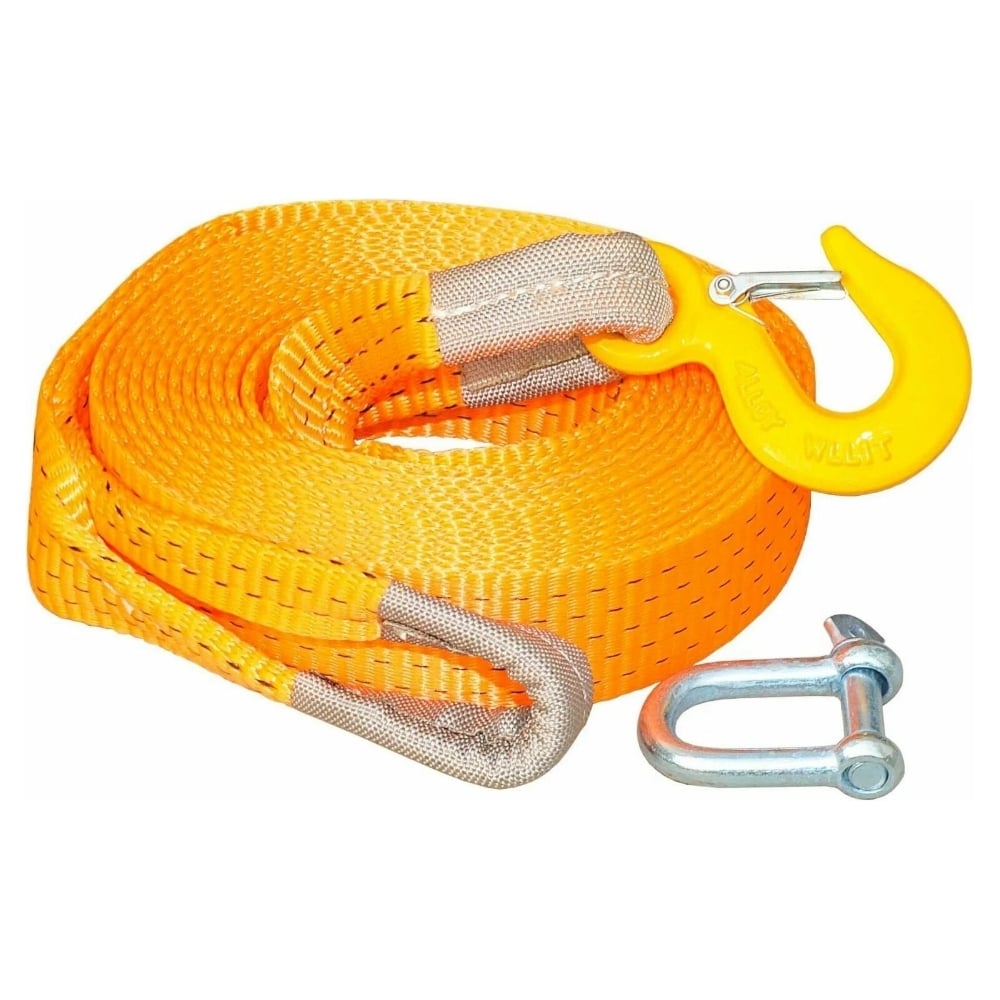 Буксировочный трос АвтоDело 10 т, лента 6 м, крюк-скоба 44511 14671