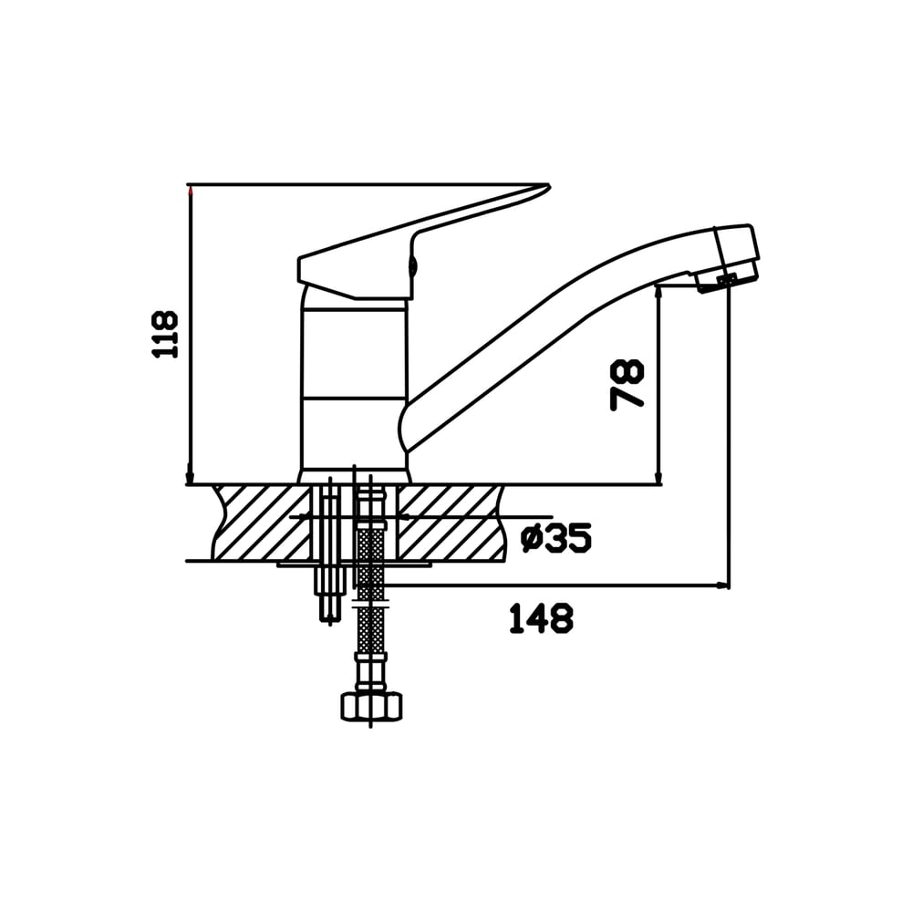 Смеситель для кухни АНТЕЙ Кристалл с коротким изливом, крепление шпилька, d35мм 211040 211040-ANT