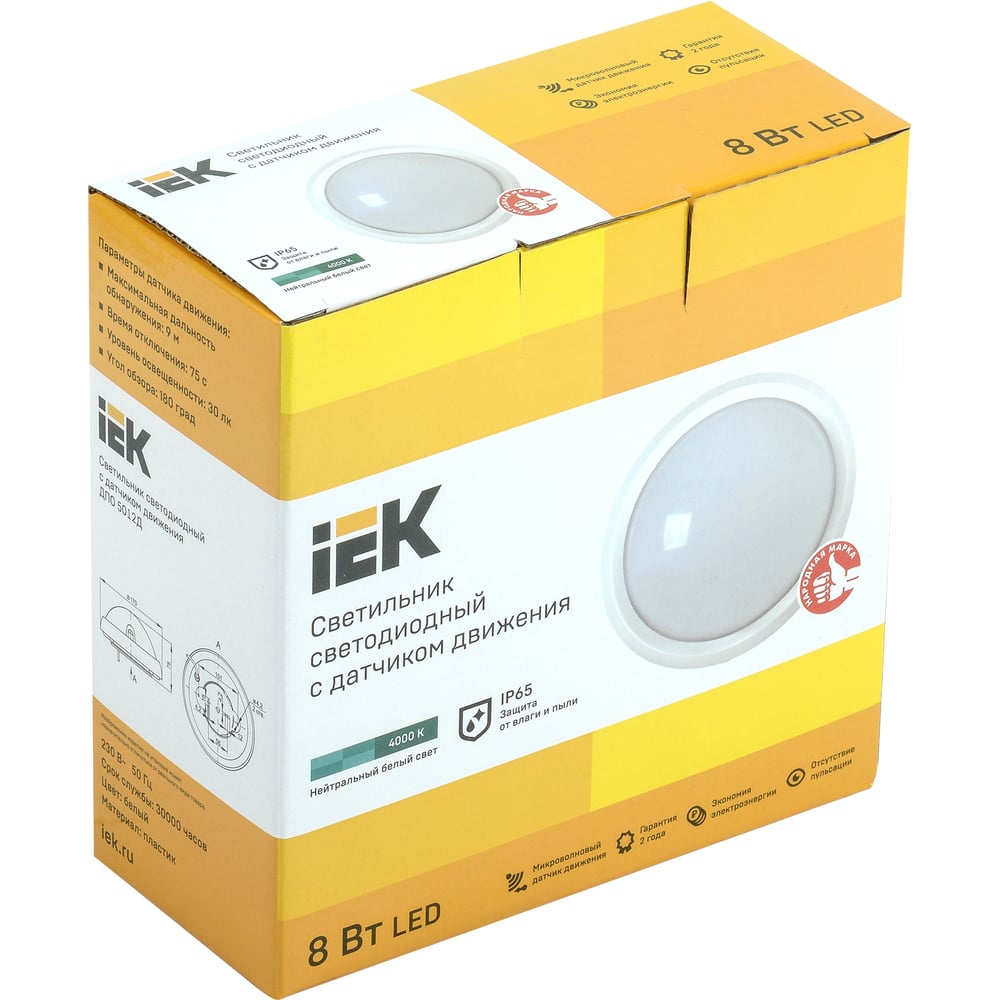 Светильник IEK ДПО 5012Д, LED, 8вт, 4000K, IP65, круг, белый, с датчиком движения LDPO1-5012D-08-4000-K01