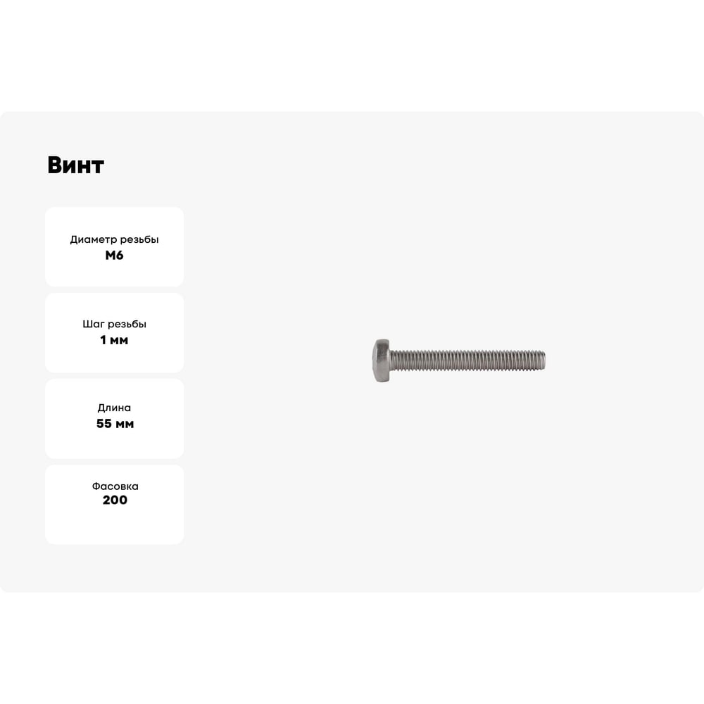 Винт КРЕП-КОМП полуцилиндрическая головка, нержавейка, DIN7985, А2, 6х55, 200 шт. вцн655