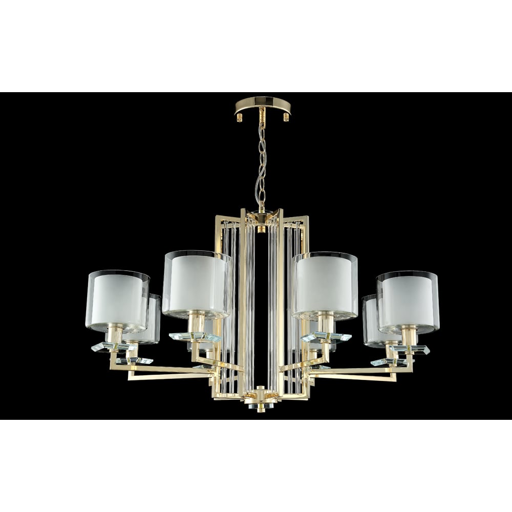 Тип подвесные Лампа в комплекте нет Мощность светильника 480 Вт Цоколь E14 Тип лампы накаливания/светодиодная Защита от пыли и влаги IP20 Стиль модерн Материал плафона стекло Коллекция NICOLAS Цвет плафона белый, прозрачный Длина 86 см Тип крепления планка Цветопередача не применимо Ra Количество ламп 8 Мощность лампочки 60 Вт Напряжение питания 220В Регулировка яркости нет Материал арматуры металл Цвет арматуры золото Трансформатор в комплекте нет Провод без провода Основной цвет золото Диаметр 86 см Тип плафонов молочный/прозрачный Особенности декоративный Поверхность арматуры глянцевая Поверхность плафонов глянцевая LED-подсветка нет