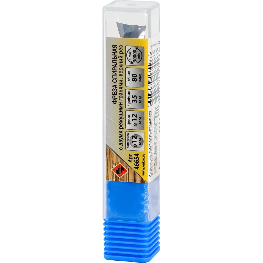 Фреза спиральная твердосплавная Z2, верхний рез, 12x35 мм, хв-к 12 мм Энкор 46654