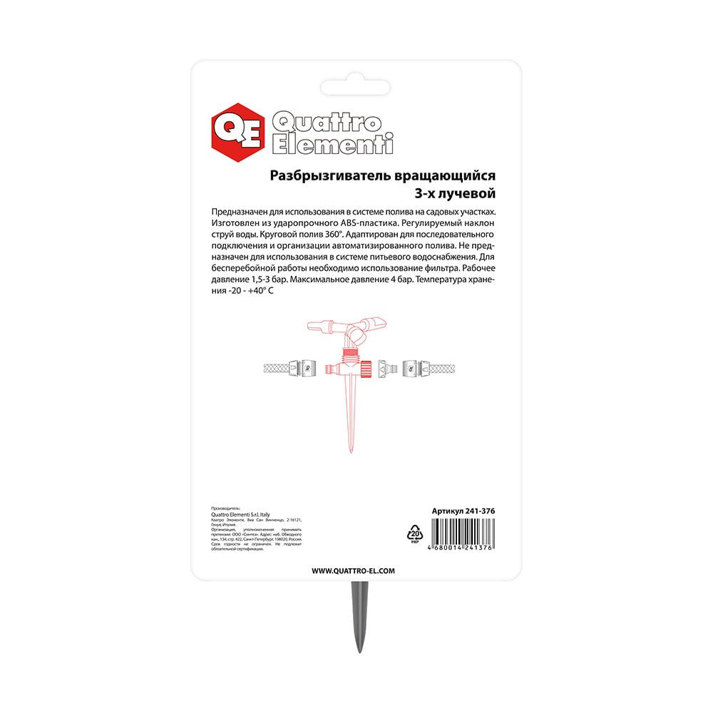 Разбрызгиватель 3-х лучевой вращающийся QUATTRO ELEMENTI 241-376