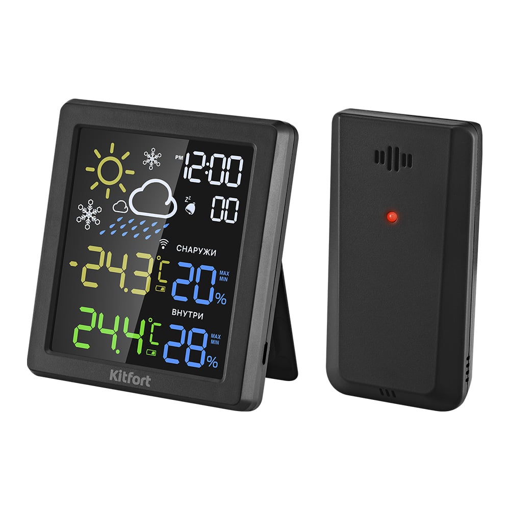 | Функции | время, дату, день недели, может служить будильником, следить за показаниями температуры и влажности в помещении и на улице, а также за погодой |