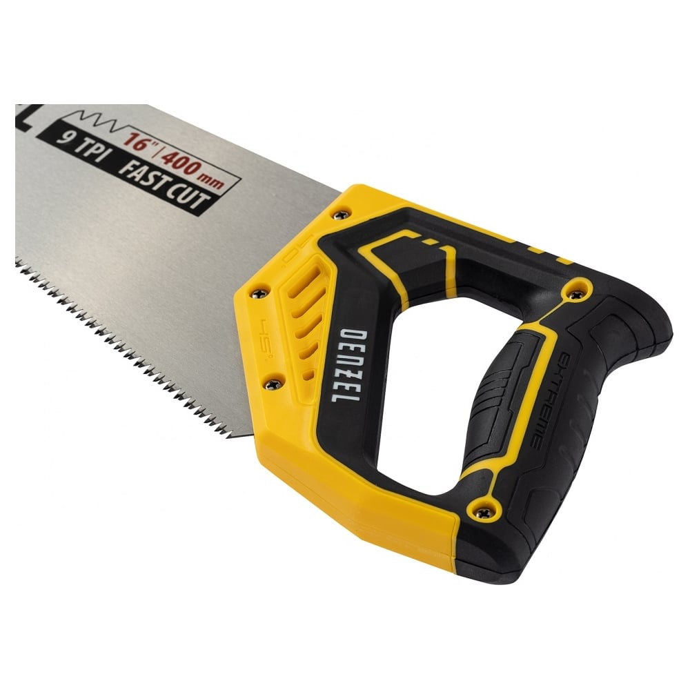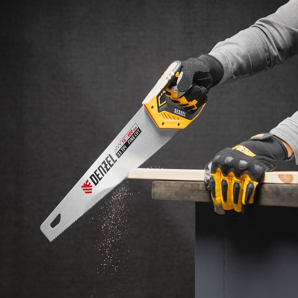 Ножовка по дереву Denzel, 400 мм, 11 TPI, зуб 3D, двухкомпонентная рукоятка 24146