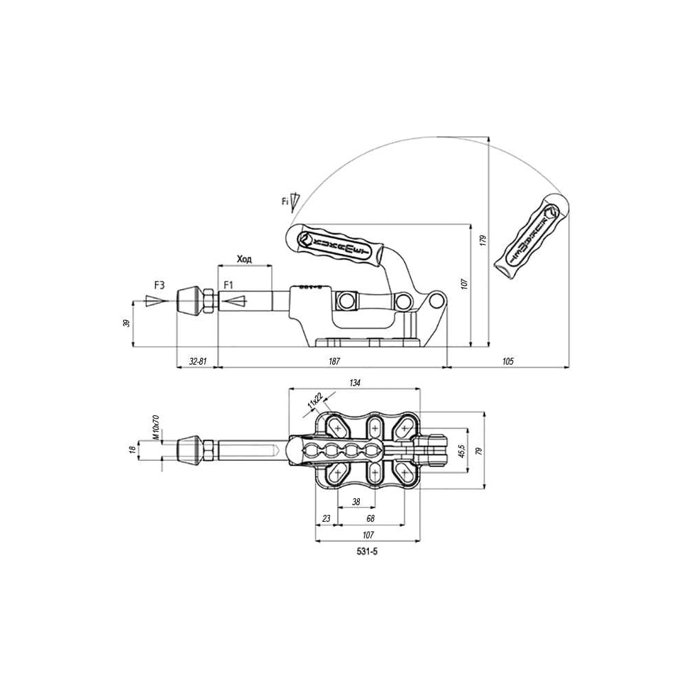 Плунжерный зажим с горизонтальным кронштейном KUKAMET, усилие 750 кг 531-5-Q20