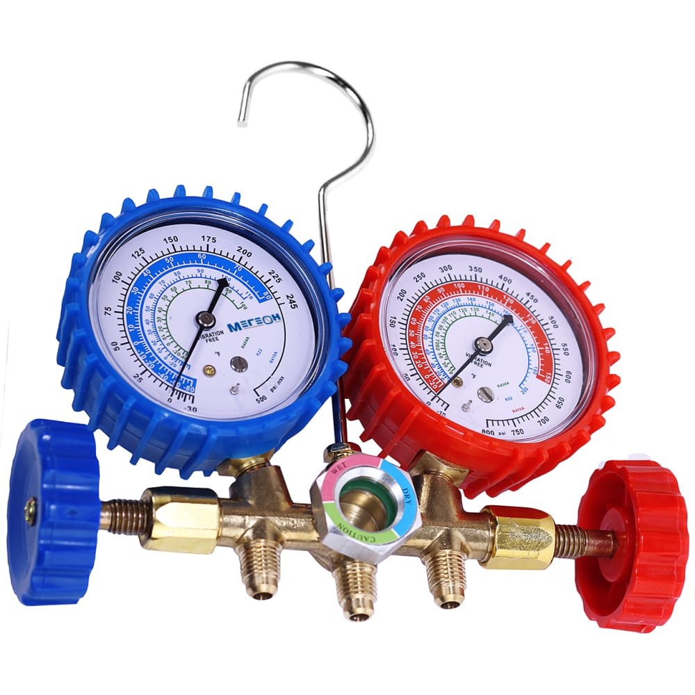 | Диапазон измерений | Манометр низкого давления «Lo» (синий): 0 — 500 psi; -15 — 0 inHg. Манометр высокого давления «Hi» (красный): 0 — 800 psi; -30 — 0 inHg. |