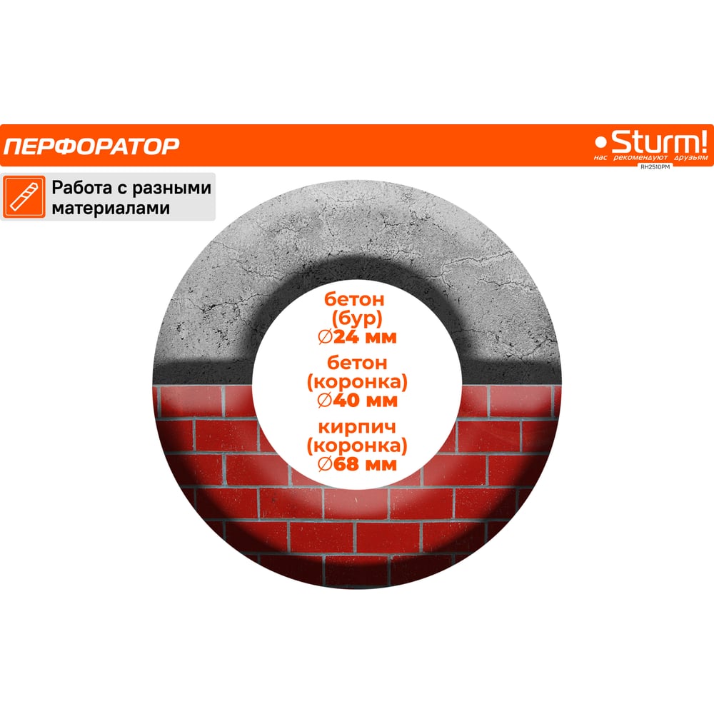 | Max диаметр сверления буром (бетон) | 24 мм |
