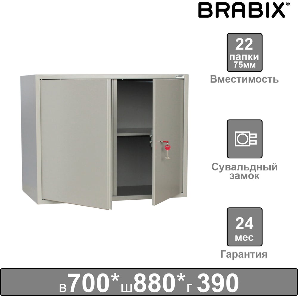 Металлический шкаф для документов BRABIX КBS-09 антресоль, 700х880х390 мм, 30кг, сварной 291158