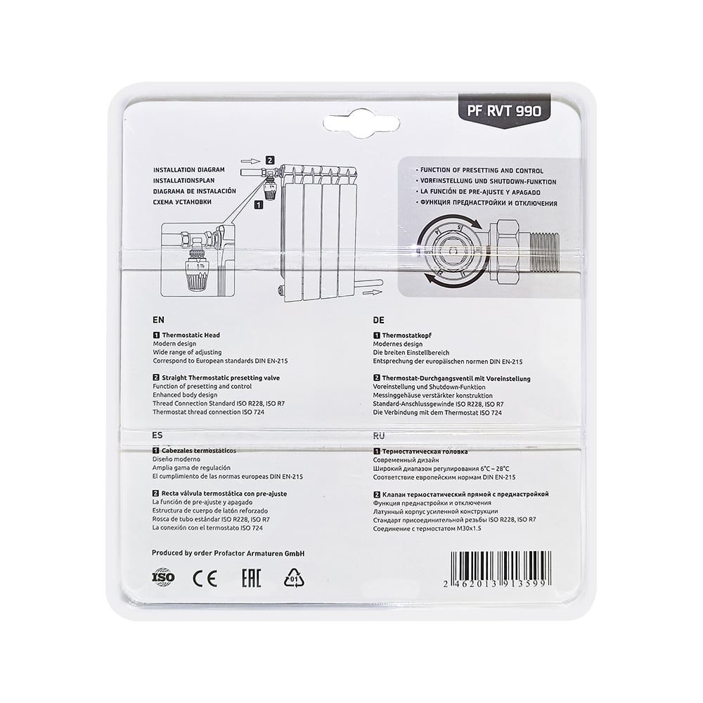 Комплект радиатора PROFACTOR термостатический, прямой, с преднастройкой, 3/4 PF RVT 990