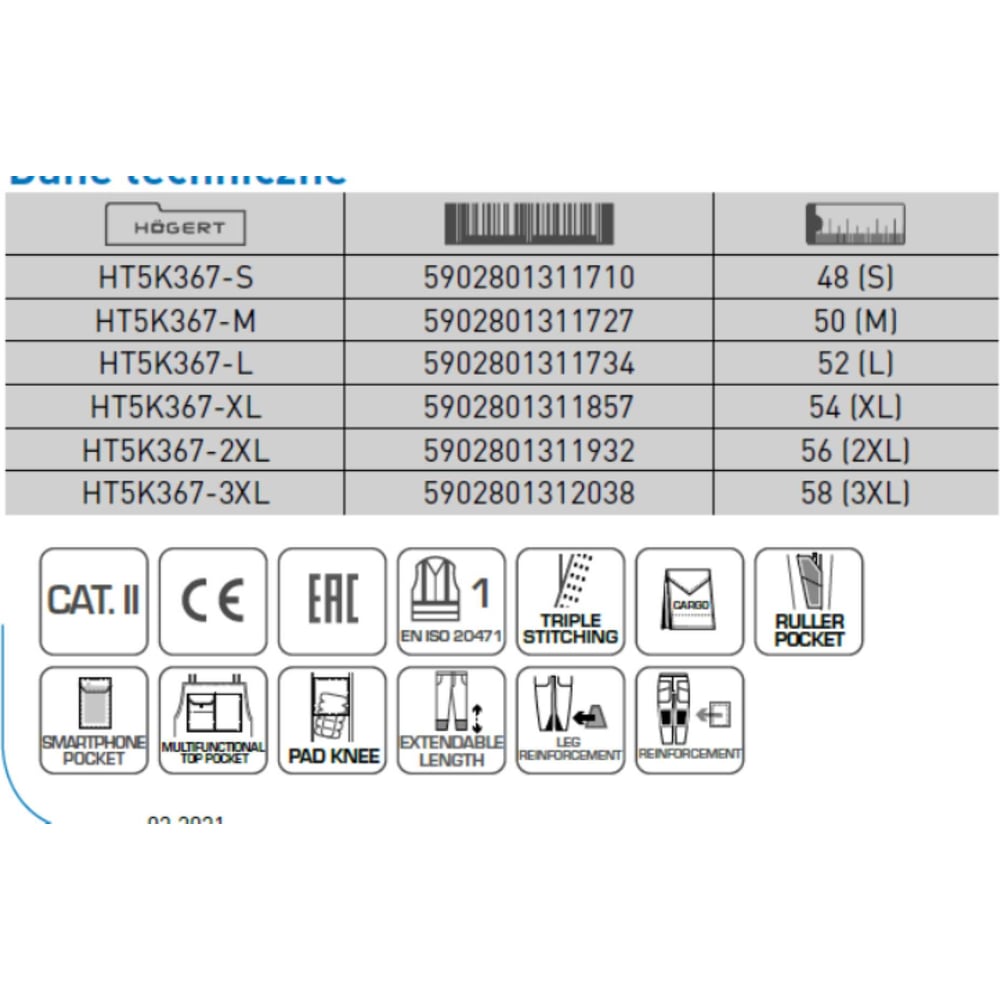 | ТР ТС/ТУ | EN ISO 13688, EN ISO 20471 класс 1, EN343 |