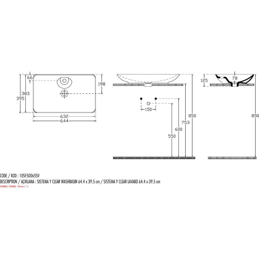 | Ширина раковины | 644 мм |