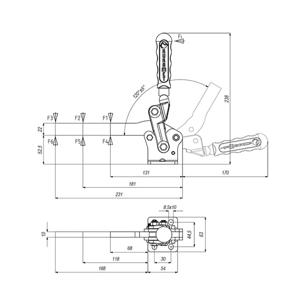 Прижим механический вертикальный для привариваемого винта KUKAMET, усилие 150 кг 241-4-D-C3