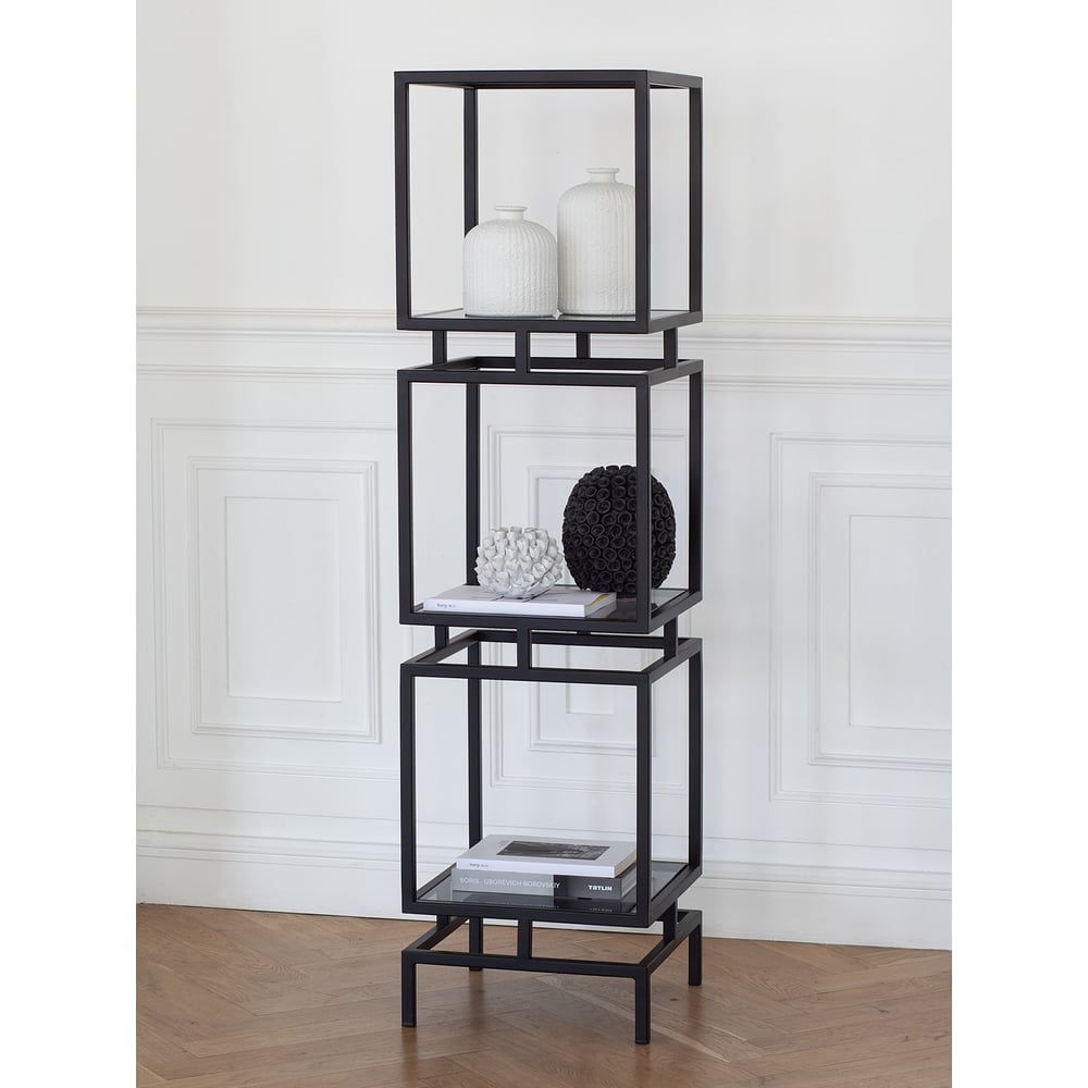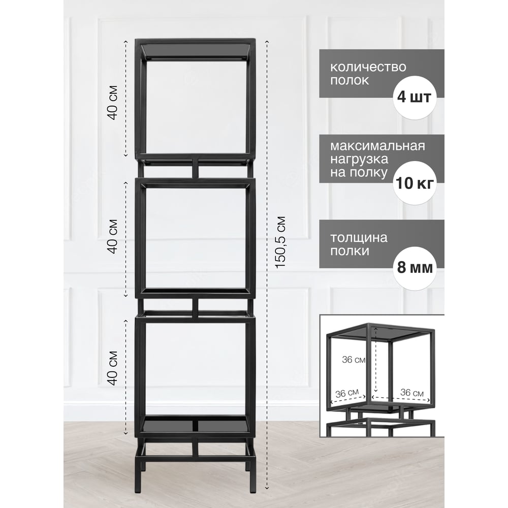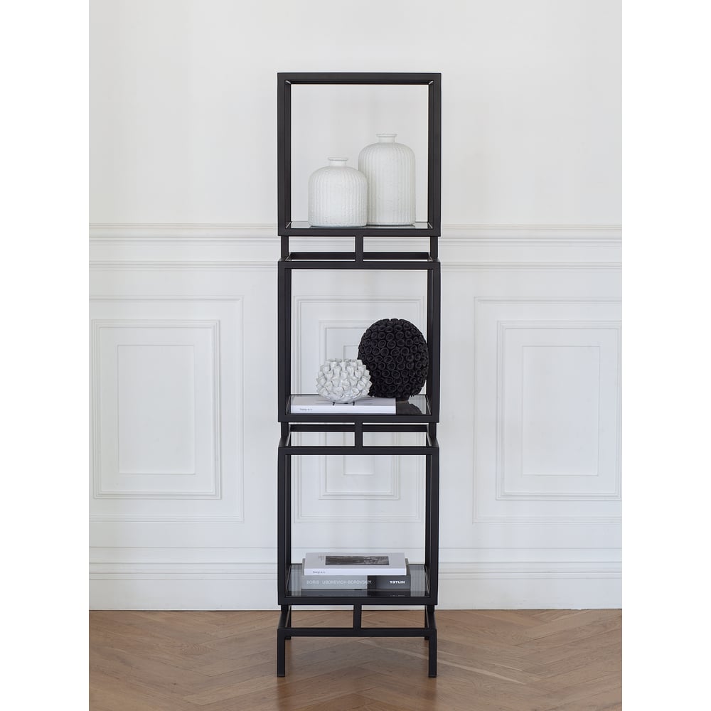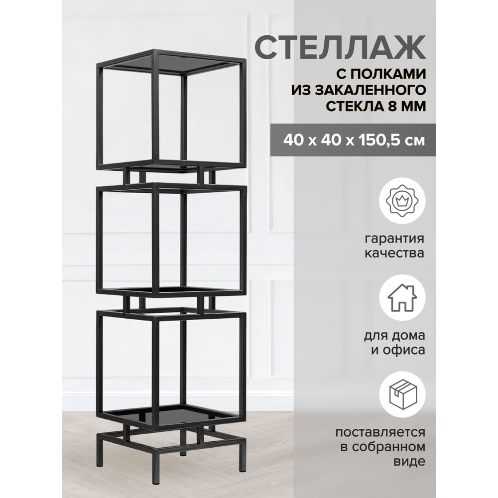 Стеллаж GreenWeen CUBIC-3, черный каркас, полки тонированное стекло, 1505x400x400 GW-CUBIC-3-B-G