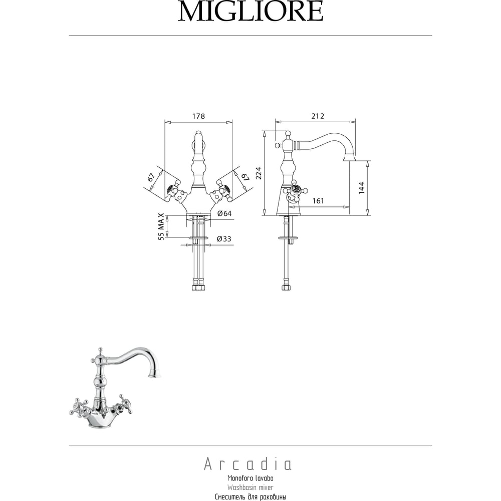 | Диаметр отверстия в раковине | 33 мм |