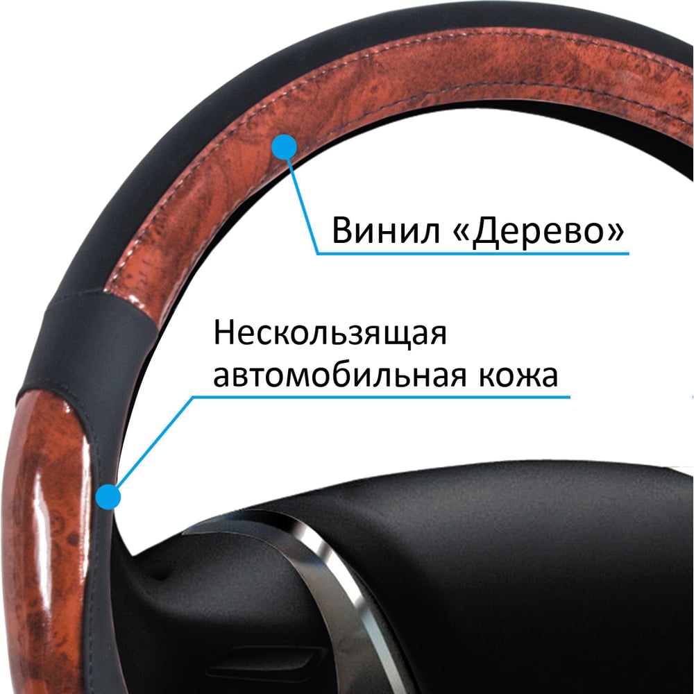 Оплетка на руль SENATOR Oregon нескользящая кожа, M, 38 см, дерево OPLS0403