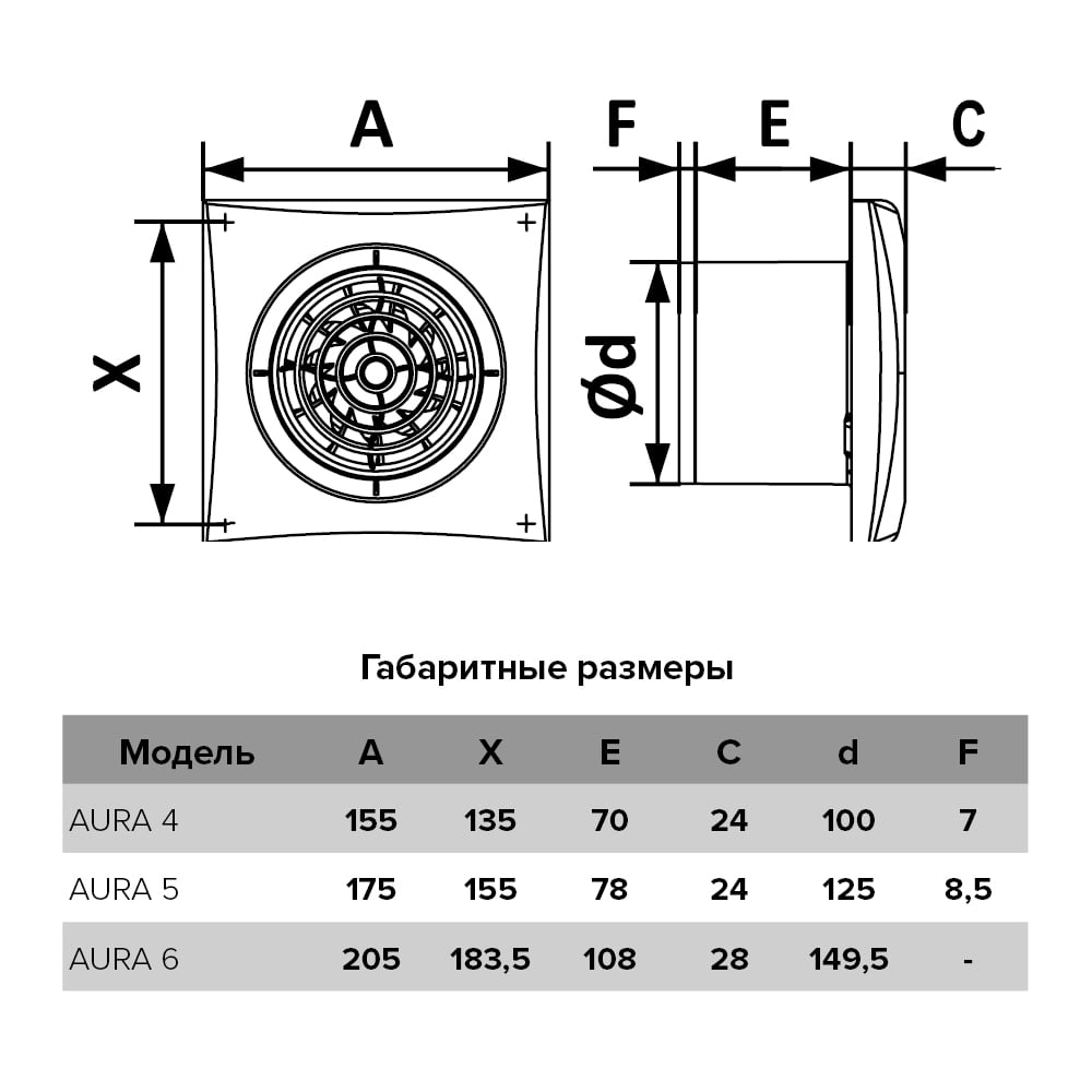 Габариты без упаковки 155х155х101 мм Высота 155 мм Ширина 155 мм Цвет белый Тип установки настенный Вес нетто 0.5 кг Серия AURA Напряжение 220 В Мощность (Вт) 8.4 Класс защиты IP25 Производительность 90 м³/ч Диаметр воздуховодов 100 мм Уровень шума 25 дБ Установочная высота 100 мм Наличие датчика влажности нет Наличие таймера нет Москитная сетка нет Обратный клапан есть Вид канала круглый Брызгозащищенное исполнение нет Установочная длина 105 мм Монтажная глубина 70 мм Тип подшипника шариковый Наличие датчика движения нет