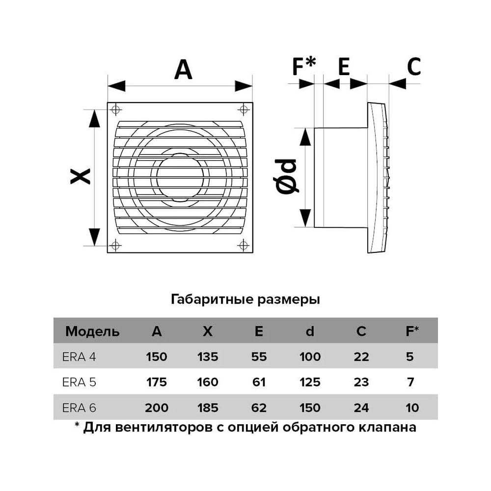 Осевой вытяжной вентилятор с обратным клапаном и электронным таймером ERA D 1004C ET 488-067