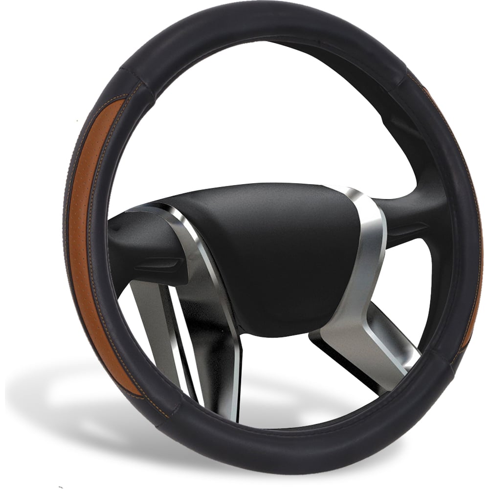 Оплетка на руль GENTLE экокожа, боковые перфорированные коричневые вставки, прострочка коричневая, M, коричневый AZARD GROUP OPLA0200