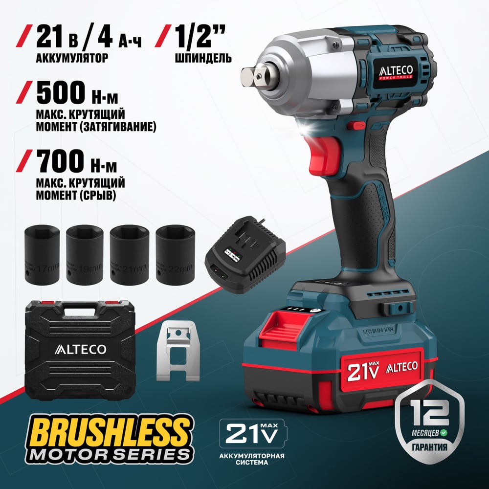 Бесщеточный аккумуляторный ударный гайковерт ALTECO CIW 21-500 BL 71516
