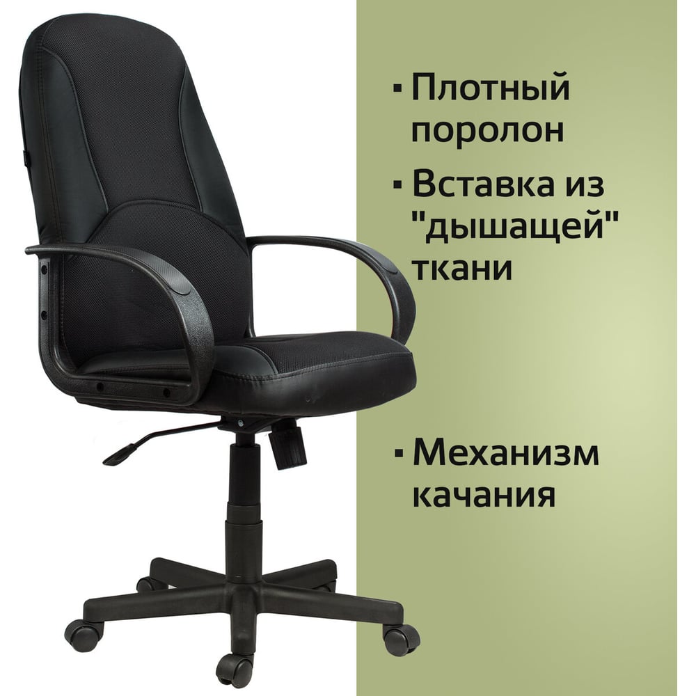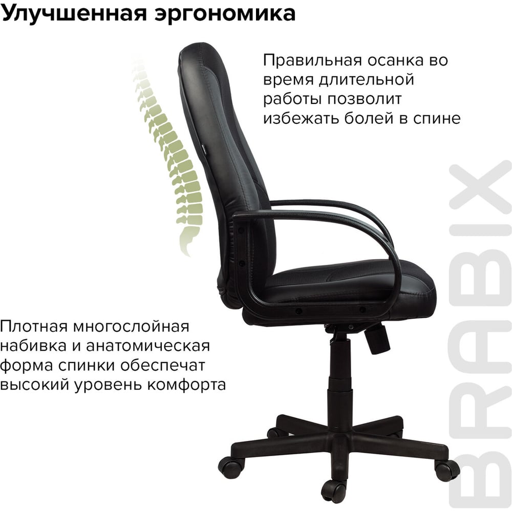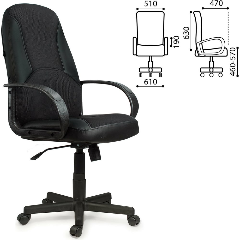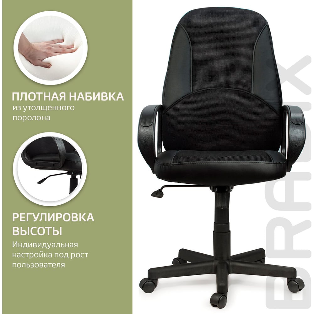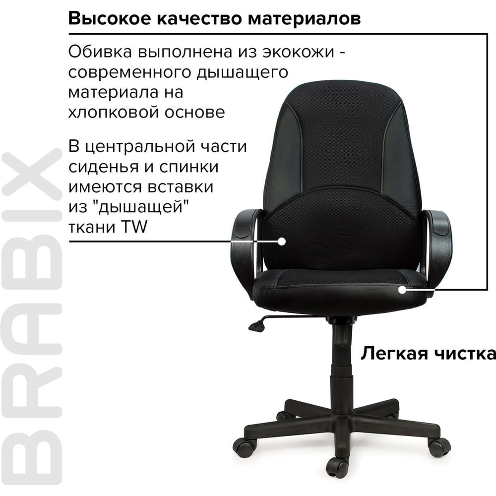 Компьютерное офисное кресло руководителя BRABIX City EX-512, с подлокотниками, кожзам, ткань 531407