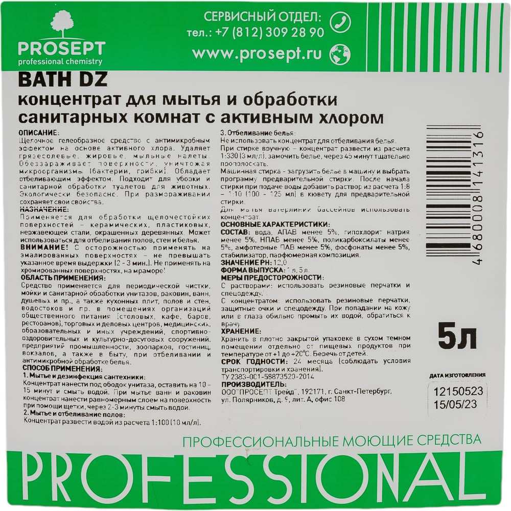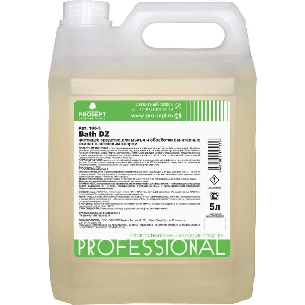 Гелеобразное средство с дезинфицирующим эффектом на основе активного хлора 5л PROSEPT BT Bath DZ 901BT-5/ 108-5