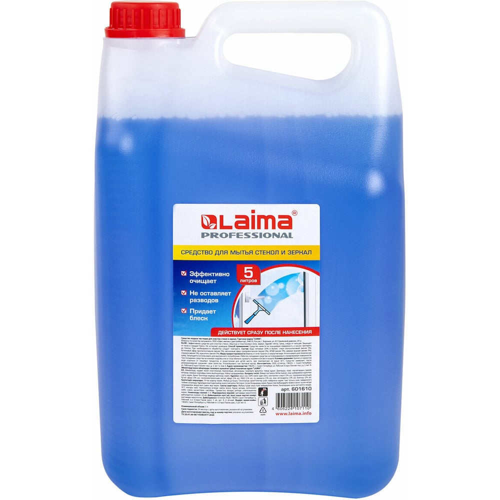Средство для мытья стекол и зеркал LAIMA 5 л, PROFESSIONAL, 601610