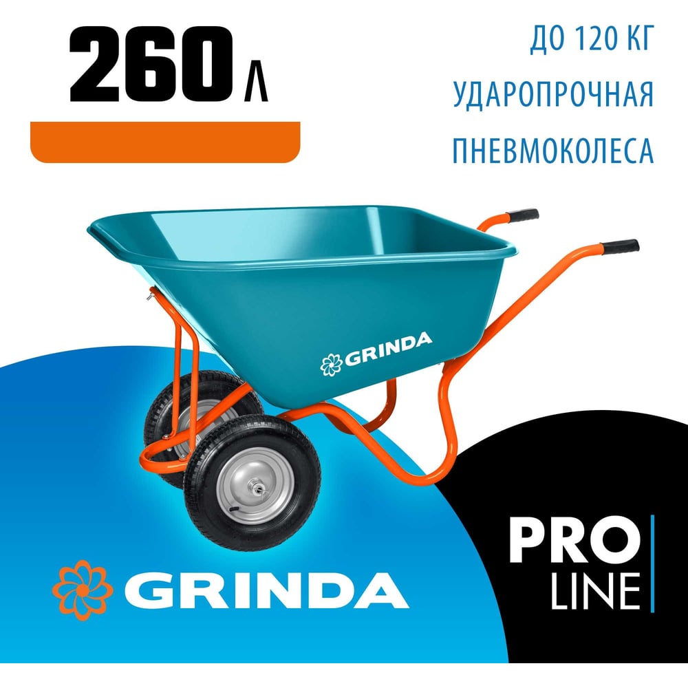 Садовая тачка с кузовом увеличенного объема Grinda Gp-1 260 л, ударопрочный пластиковый кузов 422401