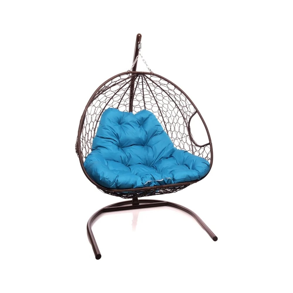 Подвесное кресло M-GROUP ДЛЯ ДВОИХ с ротангом коричневое, голубая подушка 11450203