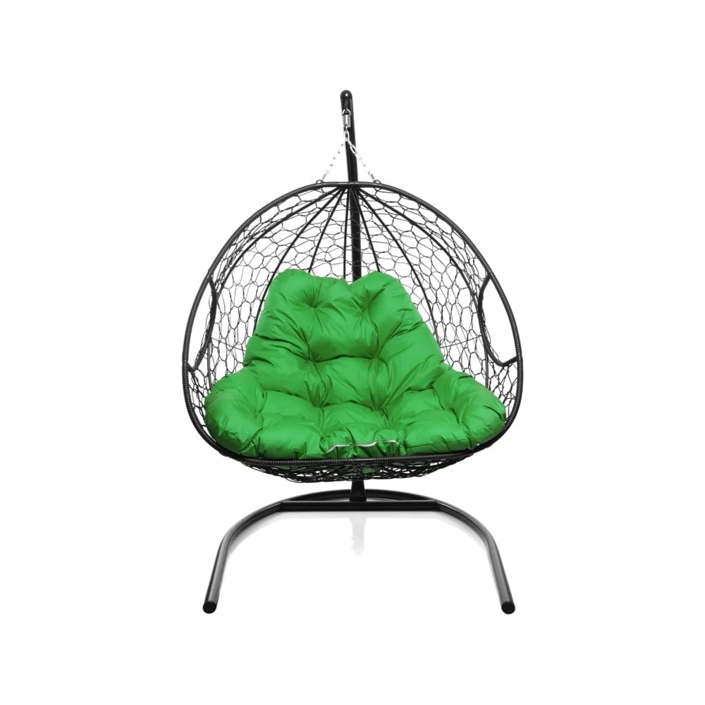 Подвесное кресло M-GROUP ДЛЯ ДВОИХ с ротангом чёрное, зелёная подушка 11450404