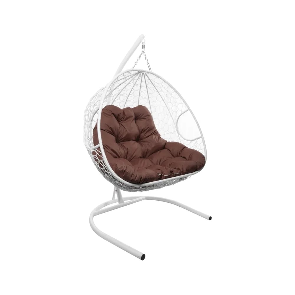 Подвесное кресло M-GROUP ДЛЯ ДВОИХ с ротангом белое, коричневая подушка 11450105