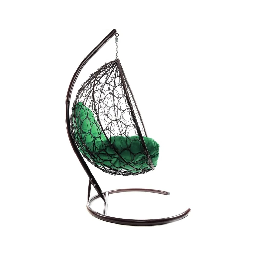 Подвесное кресло M-GROUP XL с ротангом коричневое, зелёная подушка 11120204