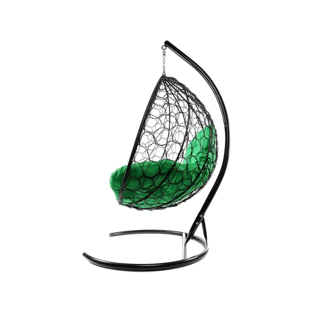 Подвесное кресло M-GROUP XL с ротангом чёрное, зелёная подушка 11120404