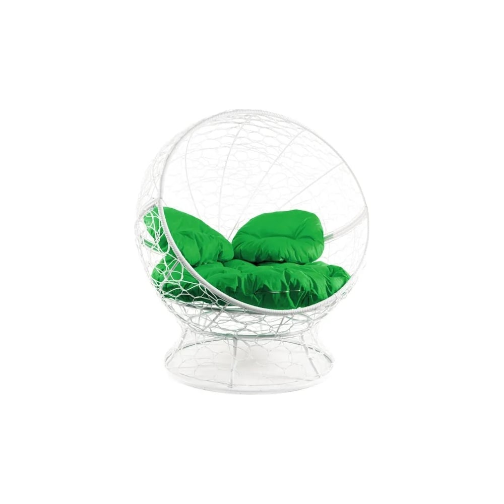 Кресло M-GROUP АПЕЛЬСИН с ротангом белое, зелёная подушка 11520104