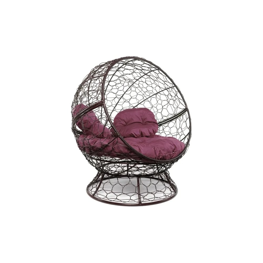 Кресло M-GROUP АПЕЛЬСИН с ротангом коричневое, бордовая подушка 11520202