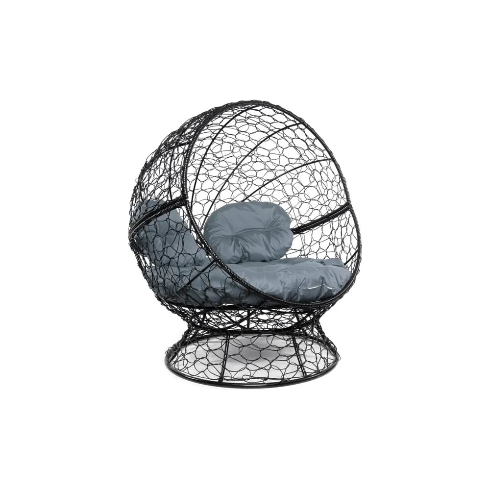Кресло M-GROUP АПЕЛЬСИН с ротангом чёрное, серая подушка 11520409