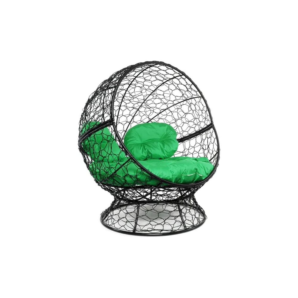 Кресло M-GROUP АПЕЛЬСИН с ротангом чёрное, зелёная подушка 11520404