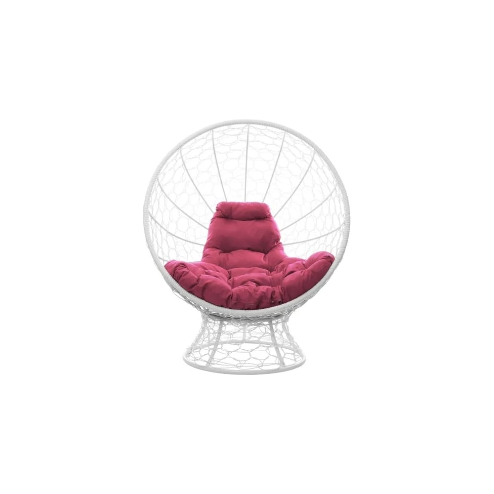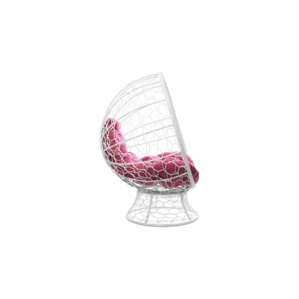 Кресло M-GROUP КОКОС на подставке с ротангом белое, розовая подушка 11590108