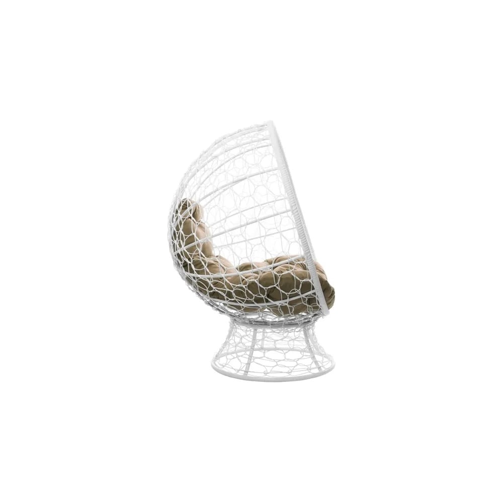 Кресло M-GROUP КОКОС на подставке с ротангом белое, бежевая подушка 11590101