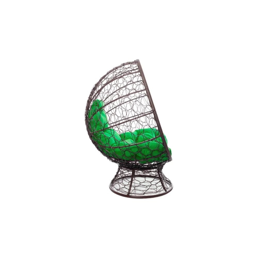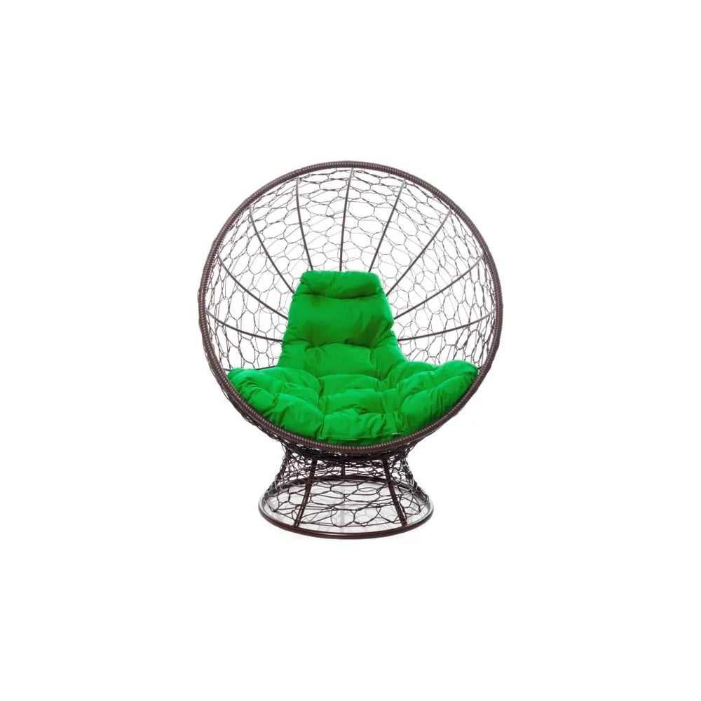 Кресло M-GROUP КОКОС на подставке с ротангом коричневое, зелёная подушка 11590204